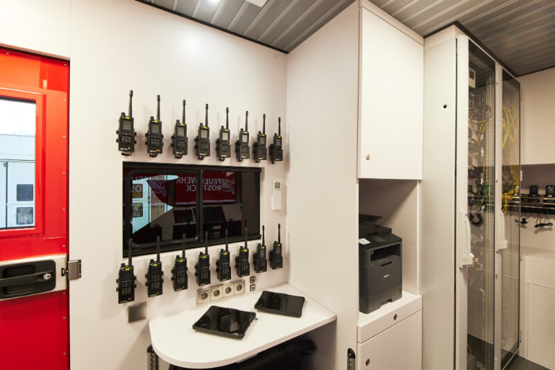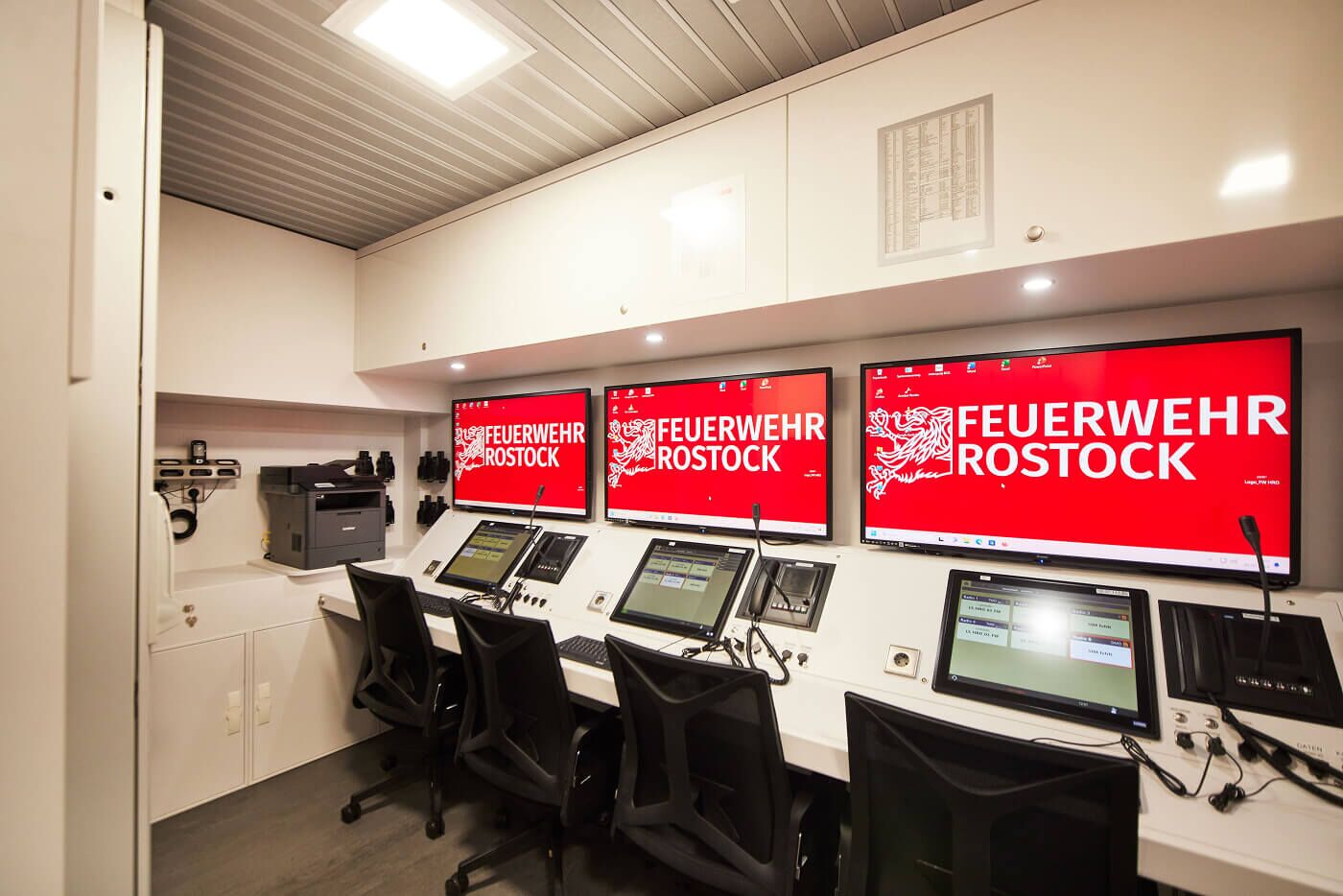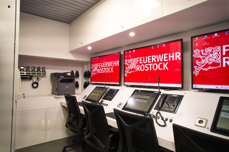 Ob stationär im Feuerwehrhaus oder mobil im Einsatzleitwagen: wir realisieren komplette Einsatzzentralen, Lage-Räume und ELW-Fahrzeuge mit modernster IT-, Funk- und Medientechnik. Von der Grundkonzeption bis zur betriebsbereiten Übergabe erhalten Feuerwehren eine Lösung, die höchste Ansprüche an Kommunikation, Koordination und Einsatzfähigkeit erfüllt.